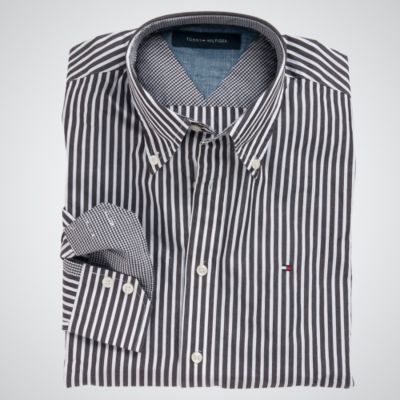 Tommy Hilfiger men's shirt. Teetering on the edge between a dress shirt and a sports shirt, this style can serve as both. Equally great under a blazer or over jeans or chinos. Button-down collar. Button placket. Long sleeves with button cuffs and contrast checked lining. Back yoke. Tommy flag embroidered at chest. 100% cotton. Machine washable.