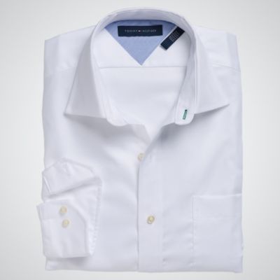 Tommy Hilfiger men's shirt. Simplistic style, wear our luxurious button-down with a suit at the office or a sweater on the weekend. Single button adjustable cuff. Single chest pocket. Wrinkle free. 100% Cotton.